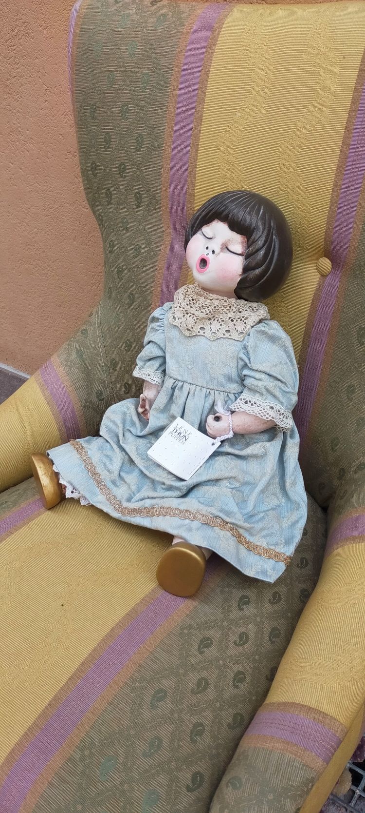 Bambola da collezione realizzata in ceramica dipinta a mano. Con certificato numerato da Lene Thun.