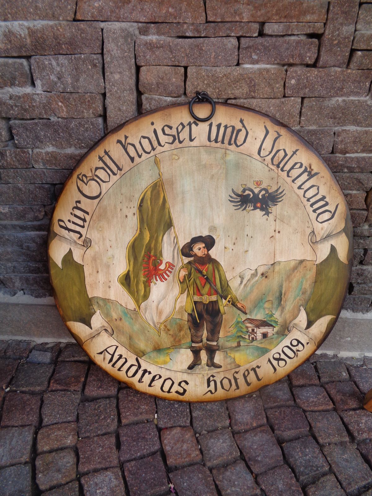 Raro bersaglio Tirolese, dipinto ad olio su legno, raffigurante il patriota tirolese Andreas Hofer.  La data 1809 simboleggia la battaglia del Bergisel combattuta dai Tirolesi contro le truppe napoleoniche.